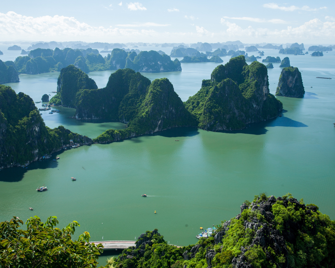 Cruise Ha Long Bay in style aboard the 5-star Hercules Cruise. Sail past iconic limestone islets, explore the stunning Sung Sot Cave, kayak or bamboo boat through Luon Cave, and swim or hike at Titop Island for unforgettable bay views.
