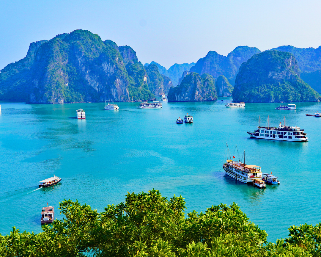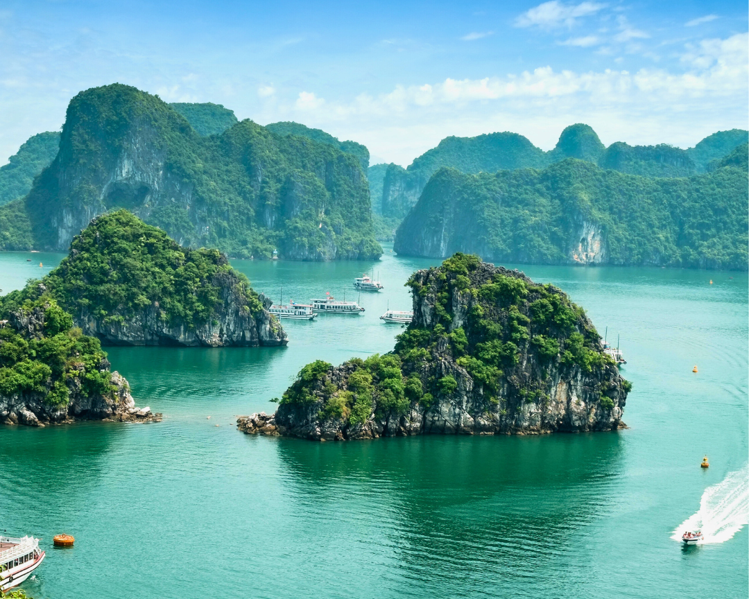 • Enjoy a Vietnamese buffet lunch while cruising past iconic limestone formations