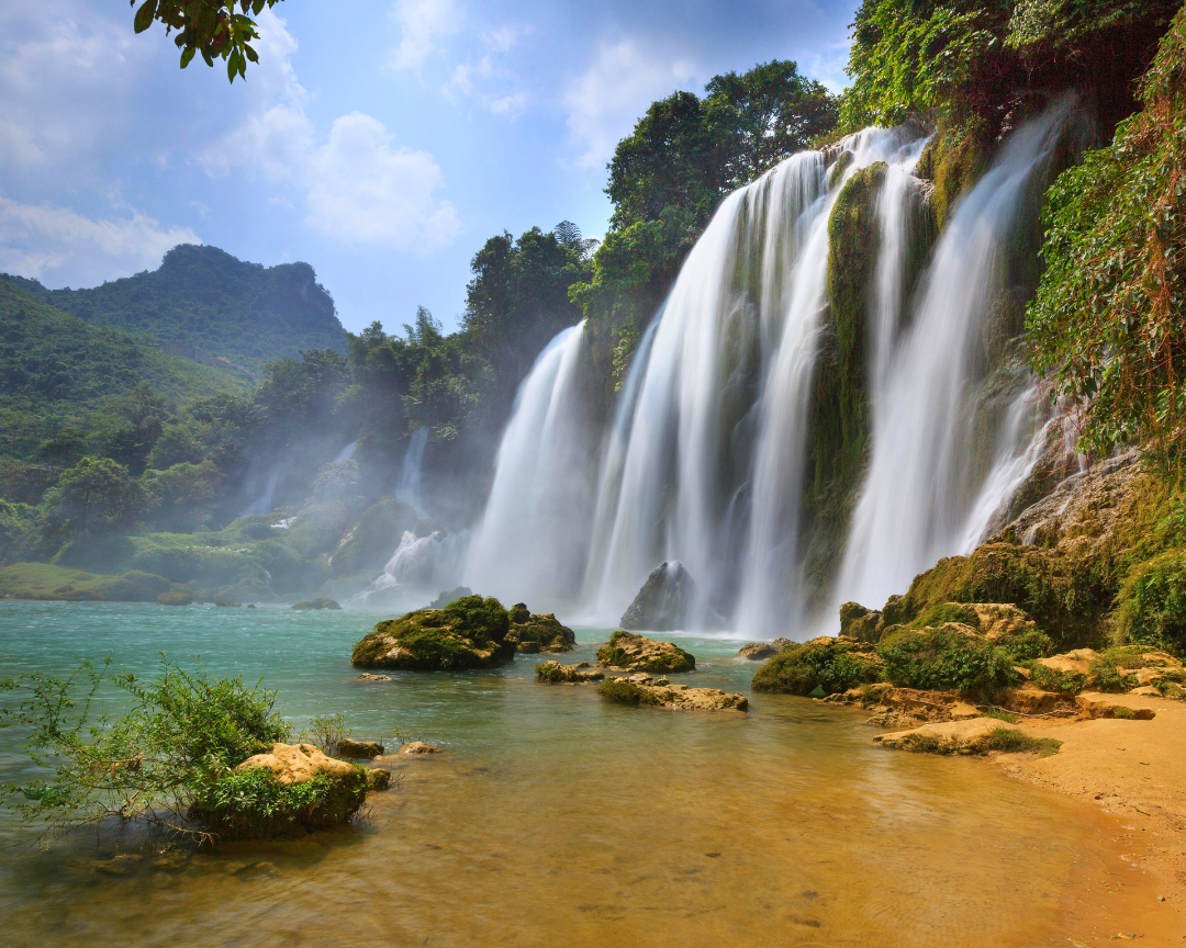 Day 4: Du Gia – Cao Bang – Ban Gioc Waterfall Leave Du Gia behind as we journey towards Cao Bang province. By afternoon, you'll be standing before the majestic Ban Gioc Waterfall, one of Southeast Asia's largest and most impressive cascades. Explore the roaring falls and maybe even take a boat ride for a different perspective. Overnight near Ban Gioc Waterfall.
