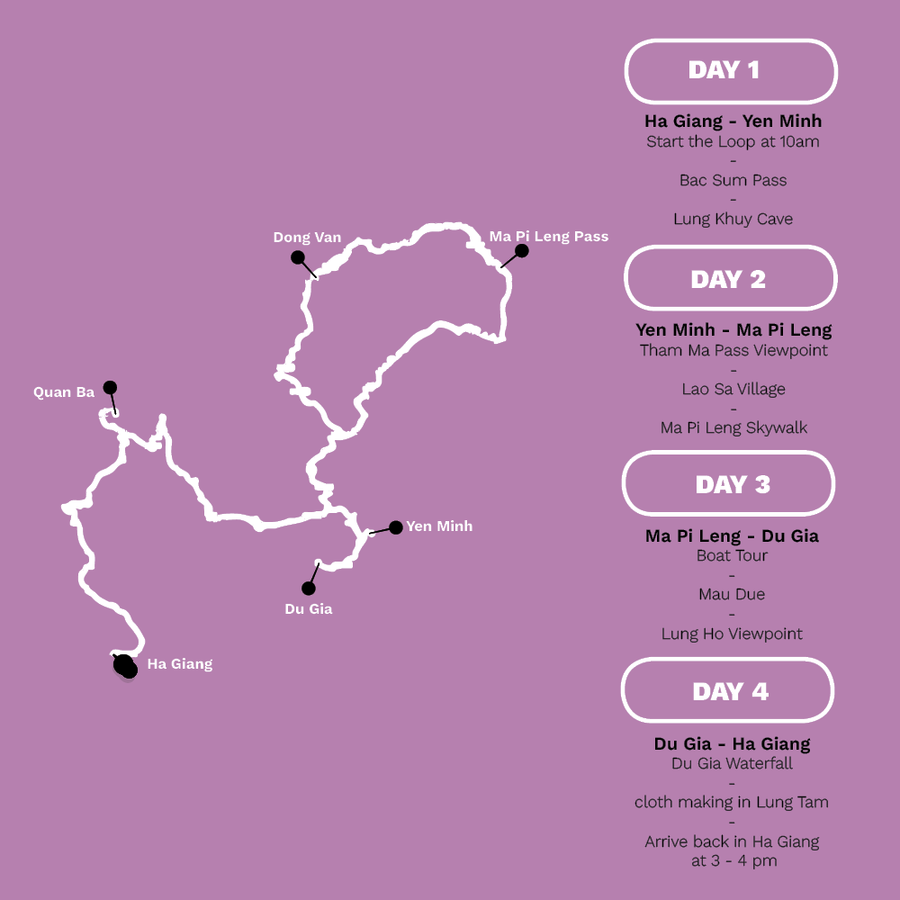 Jasmine’s motorbike tours offer an exclusive and authentic way to explore the stunning landscapes and hidden gems of fascinating Northern Vietnam. With a total distance of around 500 kilometers, the Ha Giang Loop is not a short task. However, the stunning views and magical journey will be the highlight of your Vietnam trip, and perhaps the best few days of your life! Whether you are a skilled driver or a beginner, Jasmine’s experienced guides will ensure you have a safe and unforgettable experience.