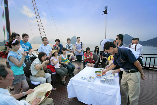 Back on deck, get hands-on with a Vietnamese cooking class, then kick back for a sunset party as the sky ignites. Nights are for legends: try your luck squid fishing, belt out some karaoke (if you dare!), or just soak it all in under a million stars. By day, carve your own path through the serene Luon Cave by kayak or chill bamboo boat ride. Finally, crash out in a comfy cabin – twin or triple-share, your perfect roost for the night.